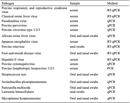 Selected pathogen-negative sows underwent aseptic cesarean section in a DPF barrier facility. Derived piglets received sterilized colostrum to establish the foundation (F₀) generation under strict bio-surveillance, including HEPA -filtered air handling, irradiated feed, and filtered water systems. Longitudinal pathogen monitoring encompassed biweekly blood, fecal, and nasal swab analyses during barrier maintenance.