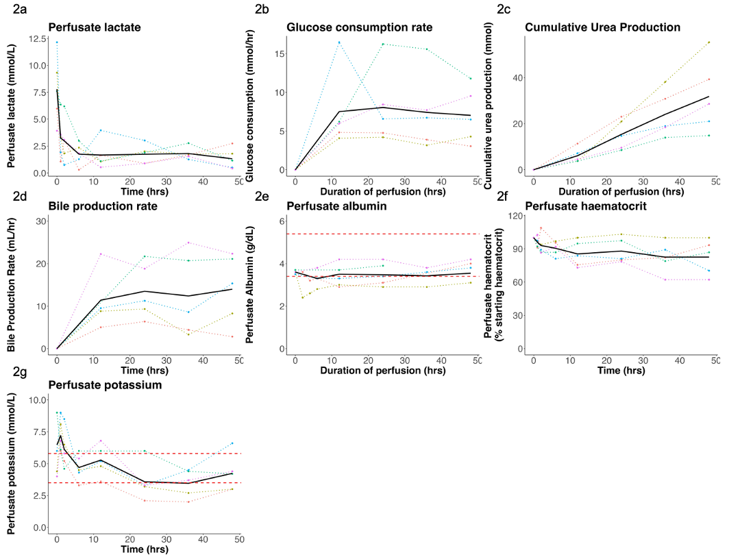 Methods: Porcine livers (EGEN-5784) were procured from Yucatan minipig clones with the following genetic edits: (i) triple glycan knockout; (ii) hemizygous insertion of seven human transgenes; (iii) functional inactivation of porcine endogenous retrovirus pol gene (3KO.7TG.RI). The EGEN-5784 livers underwent normothermic perfusion with pooled human whole blood on a metra (OrganOx, Oxford, UK).